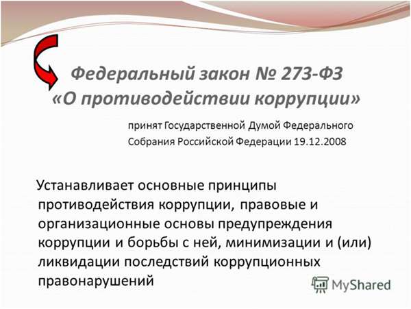 Федеральный закон Российской Федерации от 25.12.2008 № 273-ФЗ «О противодействии коррупции» (внешняя ссылка)