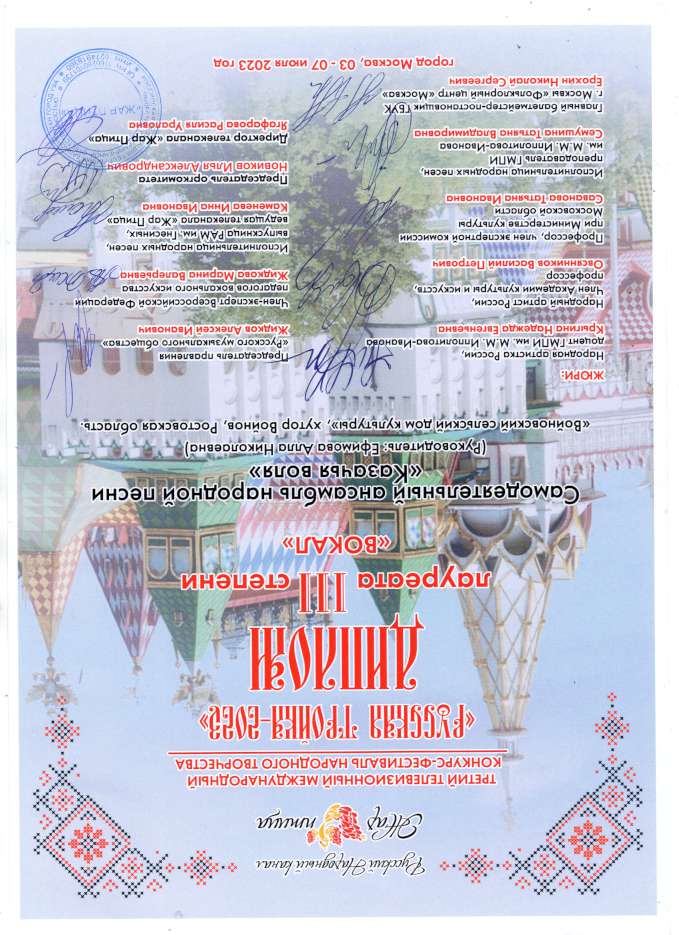 Итоги участия самодеятельного ансамбля народной песни - МоскваОпубликовано: 08-07-2023 10:00