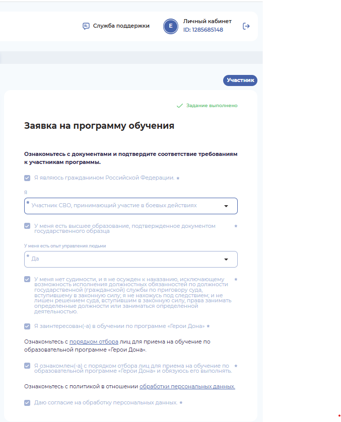 Обязательными требованиями для участия в проекте «Герои Дона» (далее – проект) являются: гражданство Российской Федерации; участие в специальной военной операции; высшее образование; управленческий опыт; отсутствие судимости.